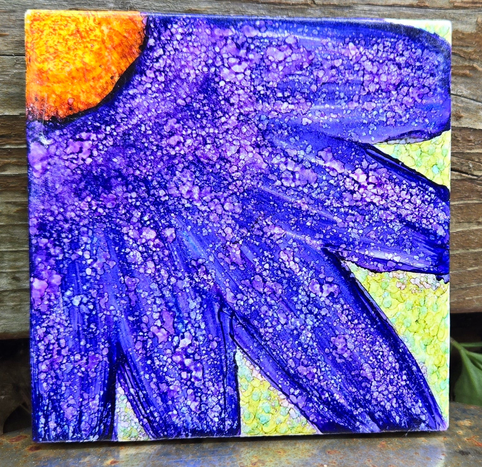 These hand painted tiles are crafted with alcohol inks, showcasing their vibrant colors and stunning designs. A versatile piece, it can be displayed on walls or tabletops, adding a touch of beauty to any space. Elevate your decor with these unique tiles. Experience the beauty and artistry of our hand painted tiles!